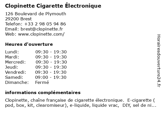 Horaires d'ouverture de branches clopinette dans france. Clopinette horaire dans le havre, fr. Clopinette cigarette électronique, гавр, сена приморская, верхняя нормандия, франция — местоположение на карте, телефон, часы работы, отзывы. Toutes les infos pratiques de cette boutique (adresse, téléphone, horaires, site web & réseaux sociaux. Voici les horaires de clopinette cigarette électronique situé à le havre, vous pouvez trouver les informations de contact, comme sa localisation à 60 rue maréchal gallieni.